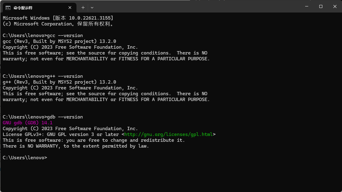 gcc --version g++ --version gdb --version